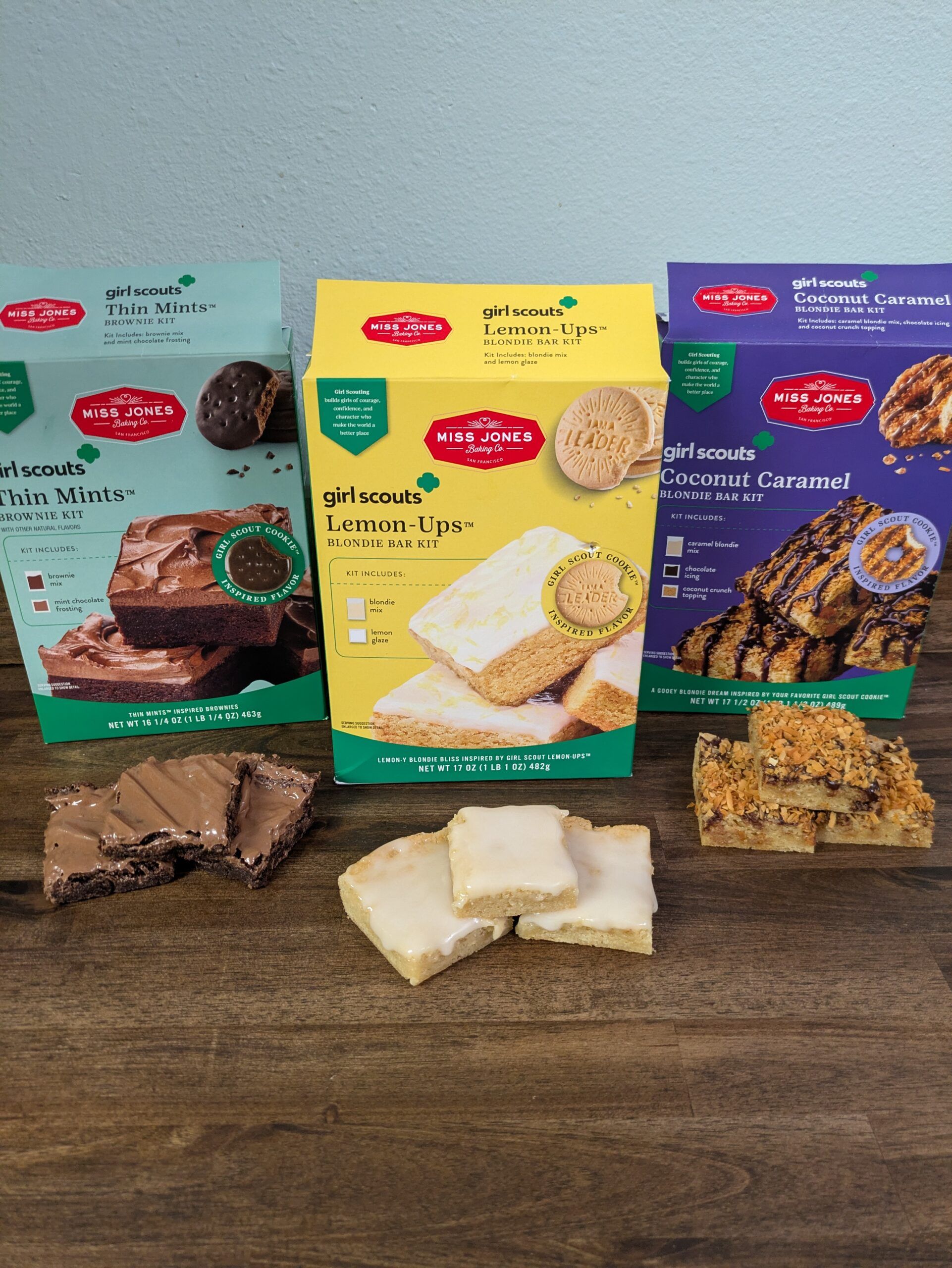 In case you missed the last post, Miss Jones has come out with a line of blondie box mixes inspired by Girl Scout cookies. There are three flavors inspired by thin mints, lemonades, and caramel delights (or samoas). I really enjoyed the last mix we tried, the caramel delights, so I am already excited to try this one. While I don’t typically buy Lemonades when I buy cookies, I have always enjoyed them when I have eaten them. The crunchy lemony cookie with a layer of icing on the bottom, I can understand why it was inspiration for this box mix line. Now let’s see what Miss Jones created with this cookie in mind.